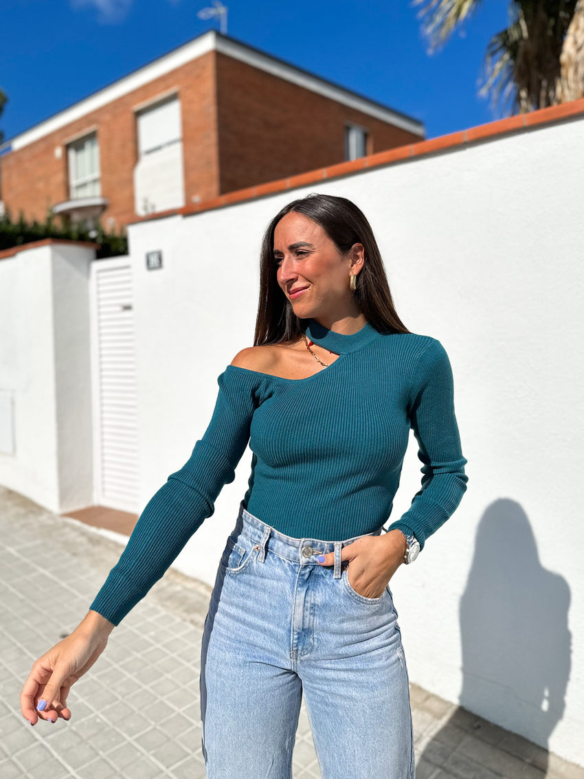 Jersey hombro volante beige