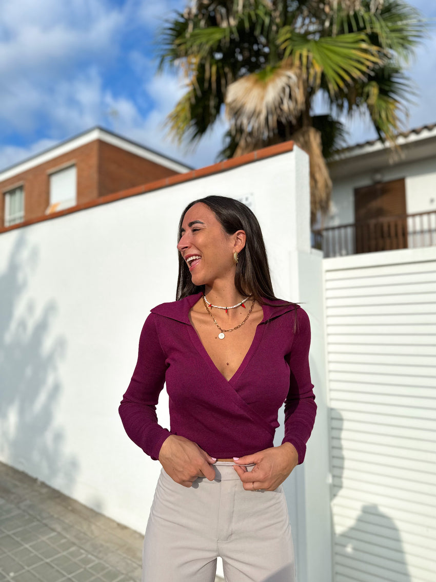 Jersey hombros cuello redondo berenjena