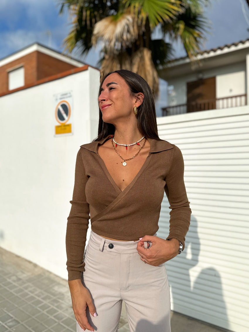 Jersey hombros cuello redondo chocolate