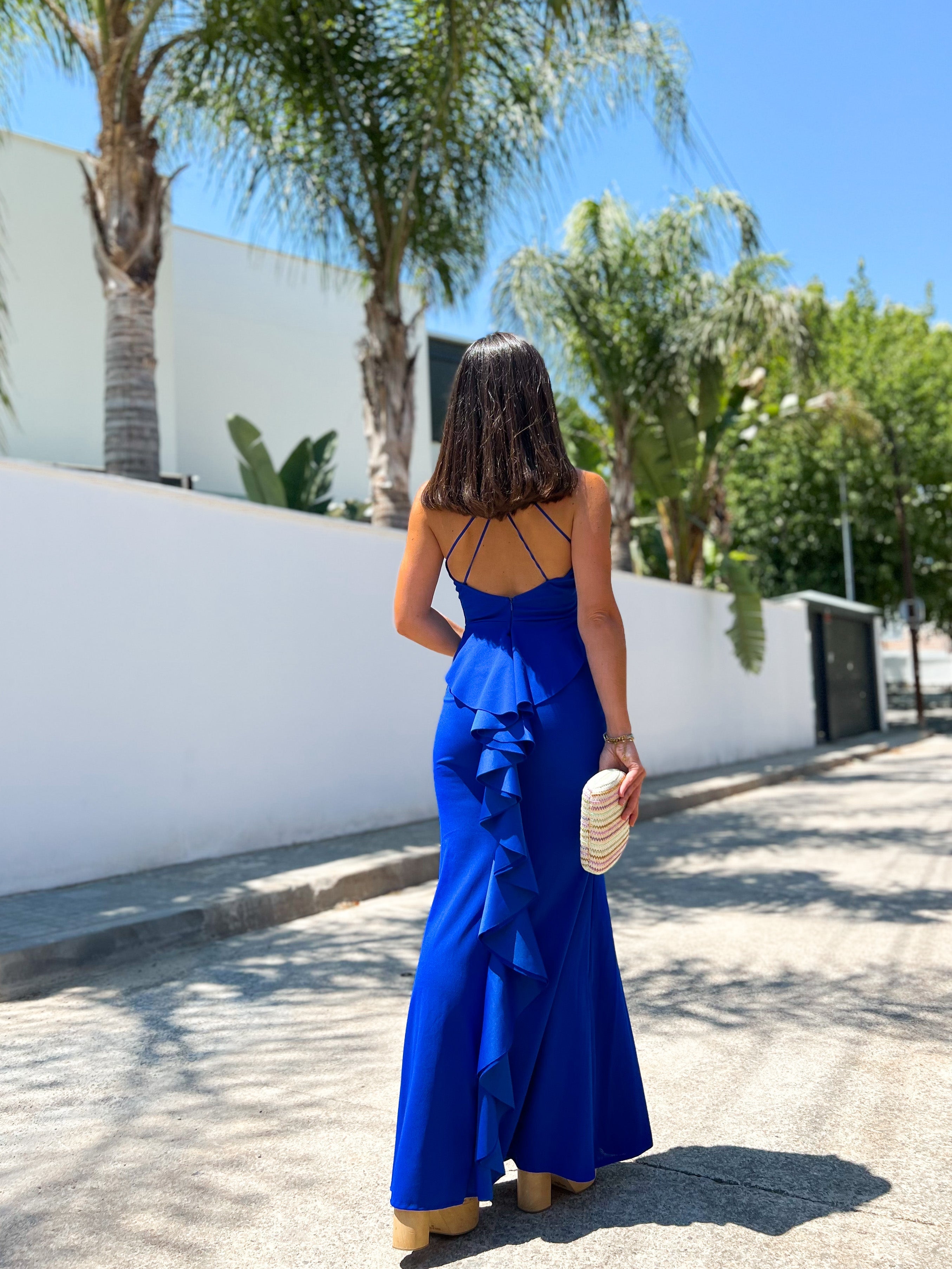 Blue printed chiffon V-neck dress$60.00 $75.00