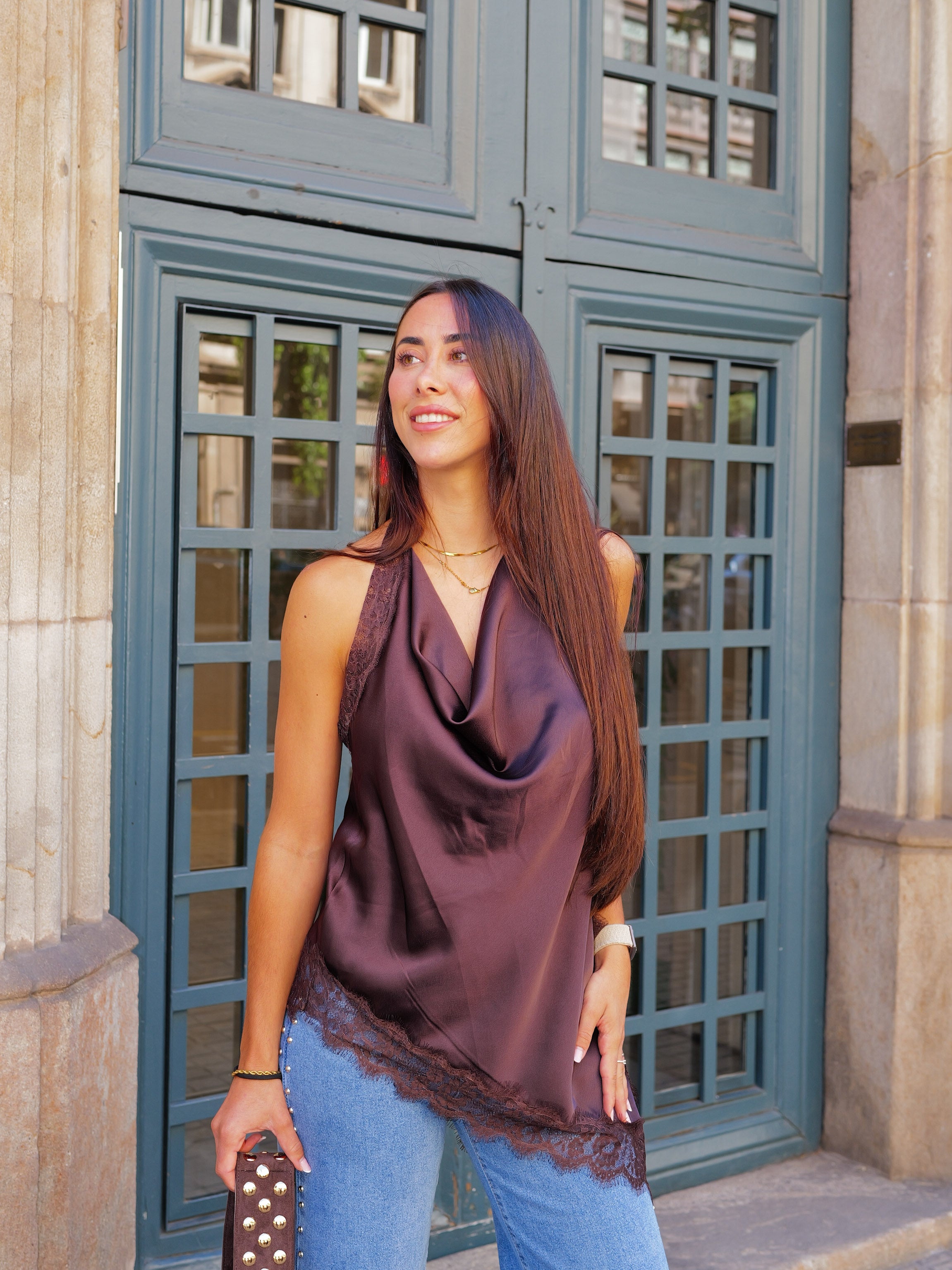 Asym cascade chocolate lingerie blouse12,99€ 29,99€
