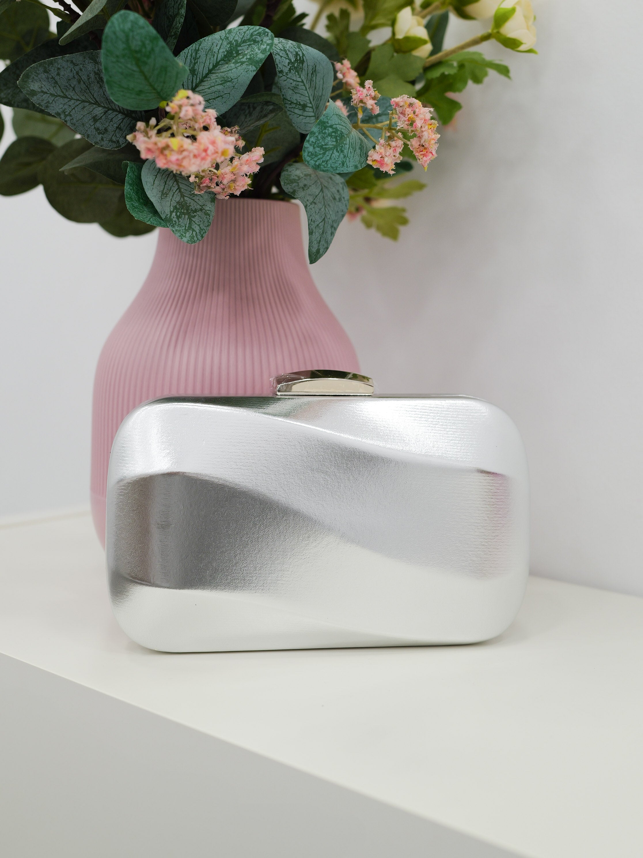 Petit sac à main avec des vagues en relief. Il est muni d'une longue chaîne amovible.
